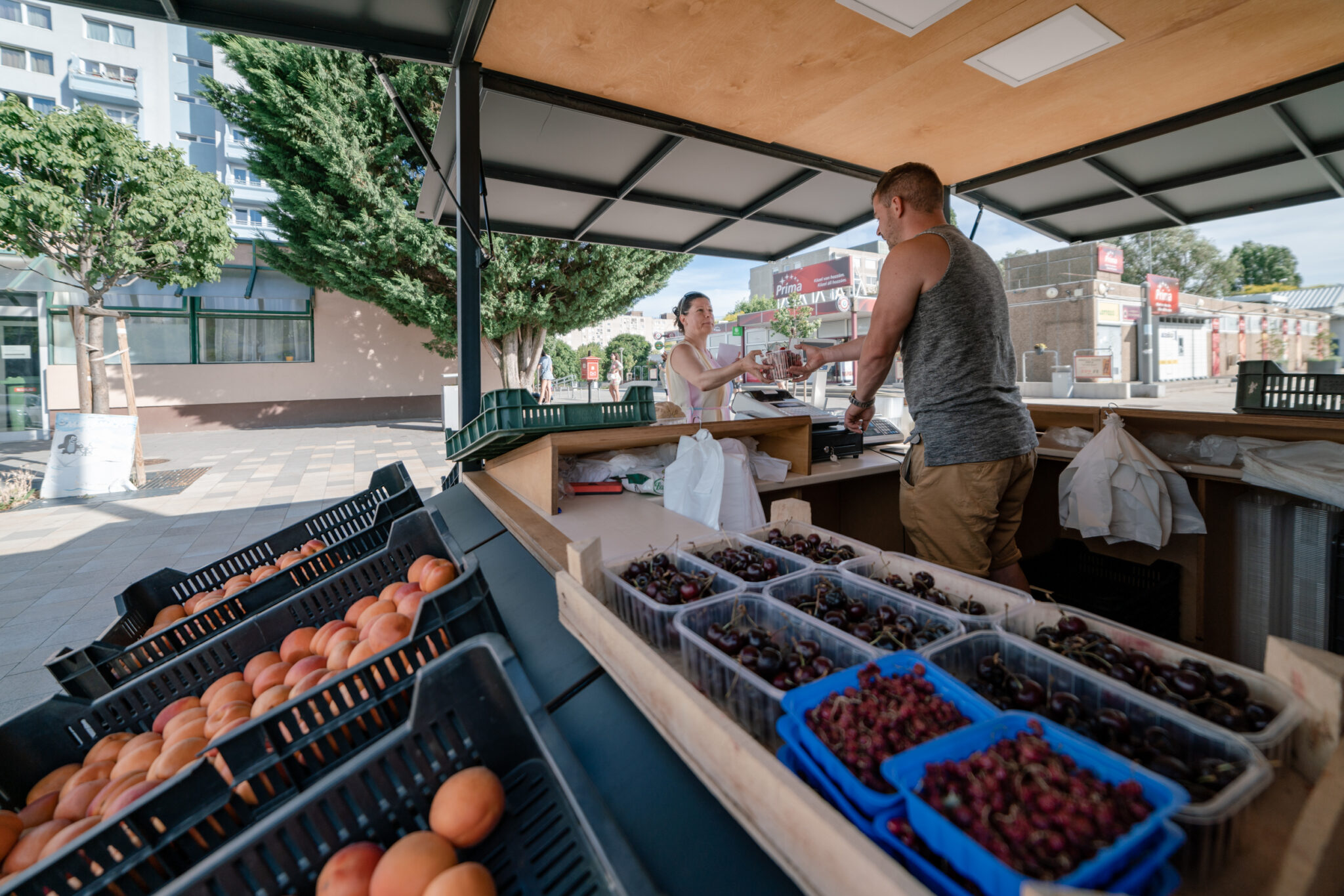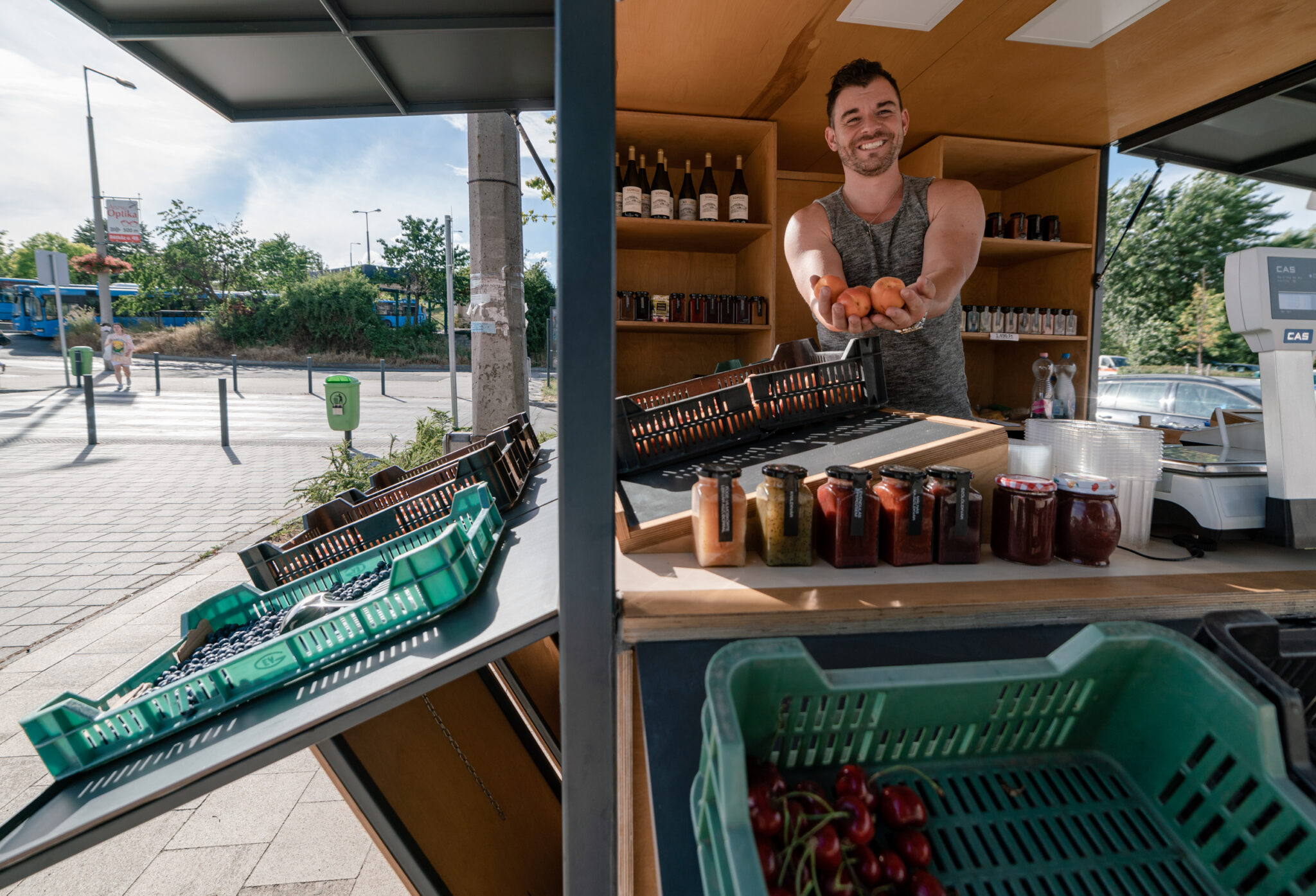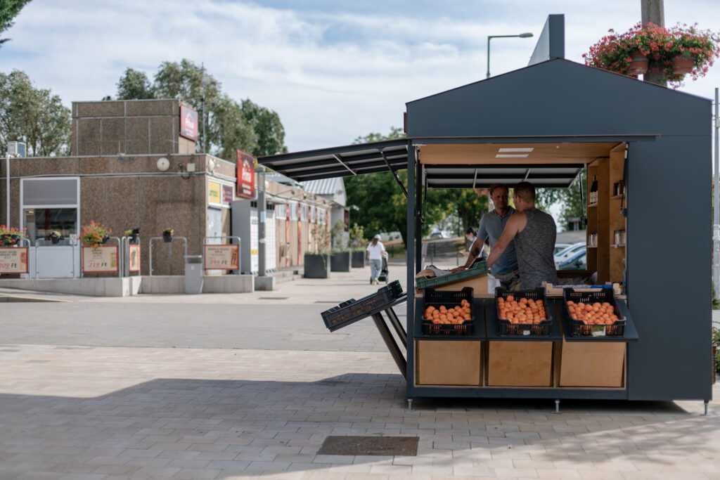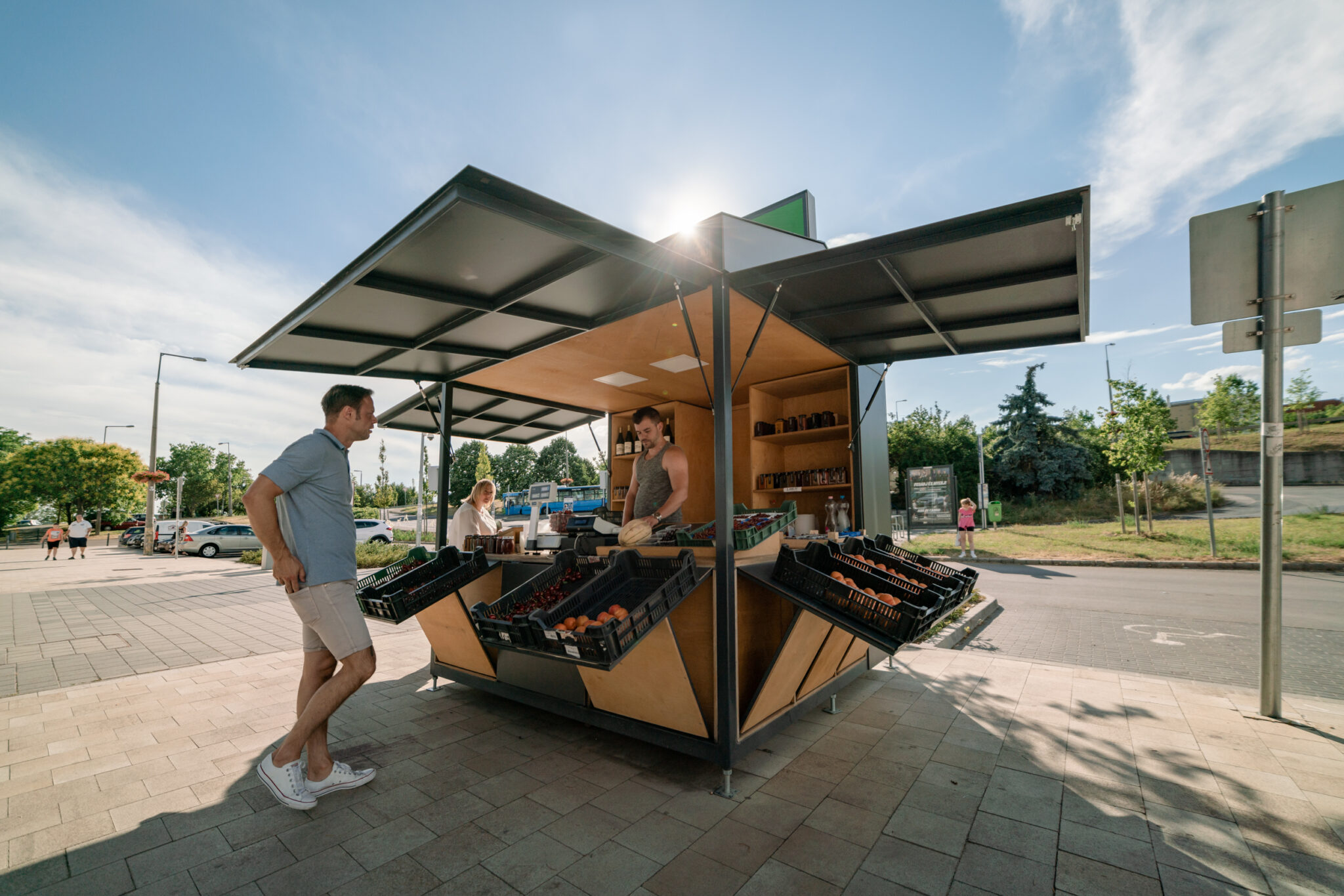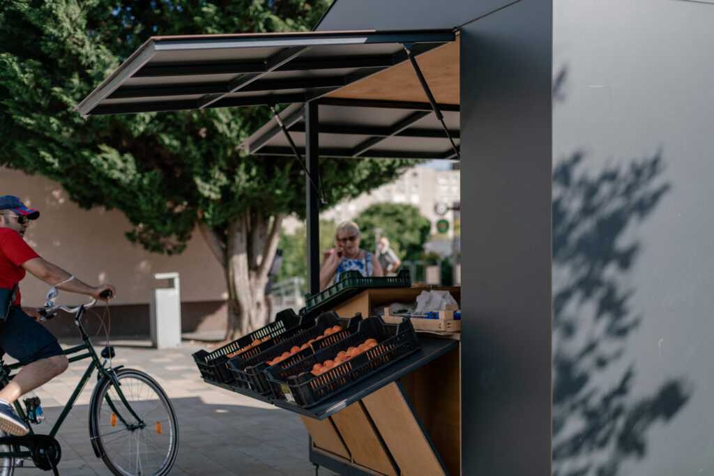 Who said fruit & vegetables street vendors cannot be design-savvy? Take a look at our take on fruit&veggie stand: the weatherproof, homogenous exterior and the natural, wooden interior creates an engaging duality.