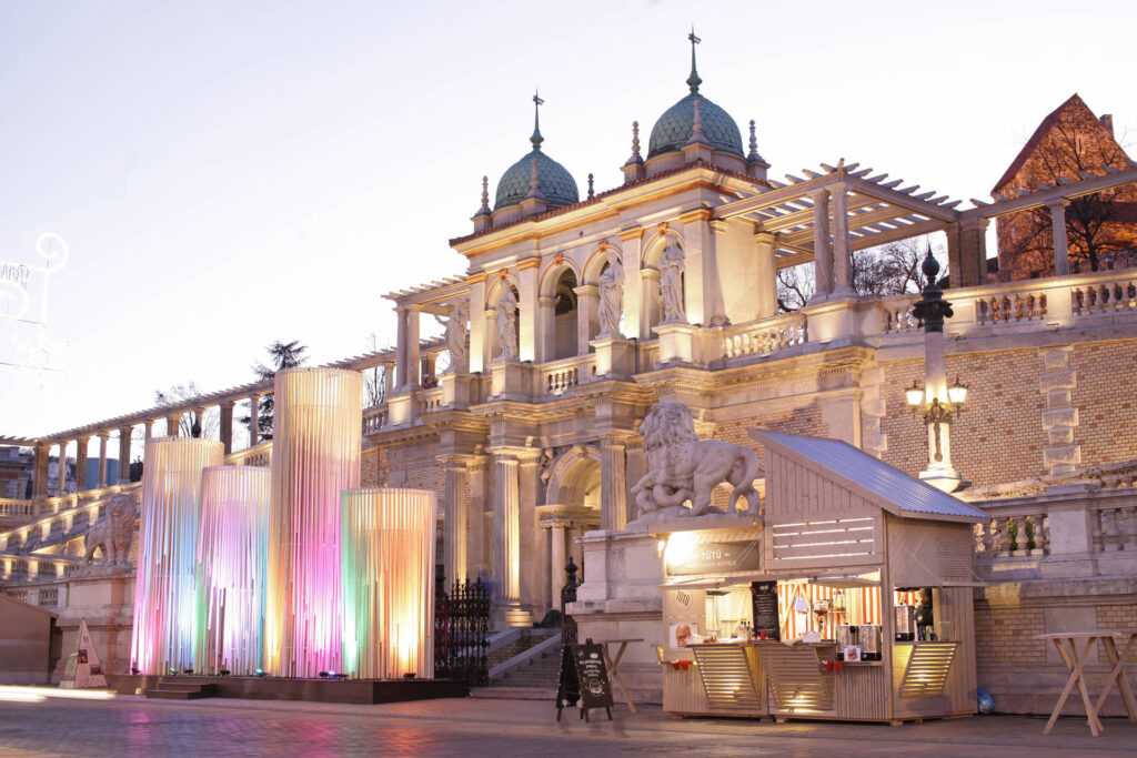 Our Advent Candles were commissioned by the Castle Garden Bazaar in Budapest and were among Europe’s tallest Advent installations in 2015. The suspended wooden laths functioned as wind chimes and were colorfully illuminated to represent the joyousness of the holiday season.