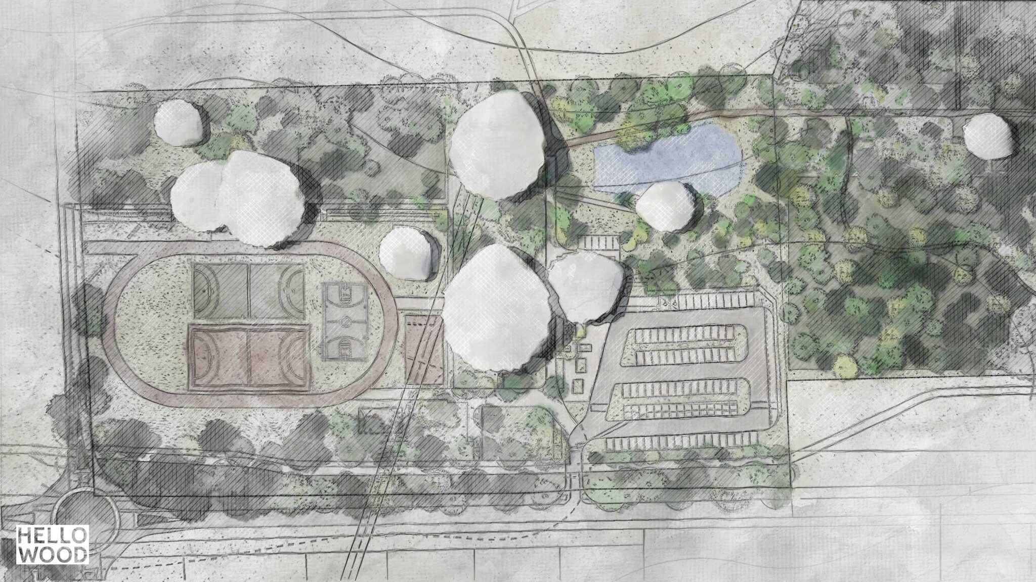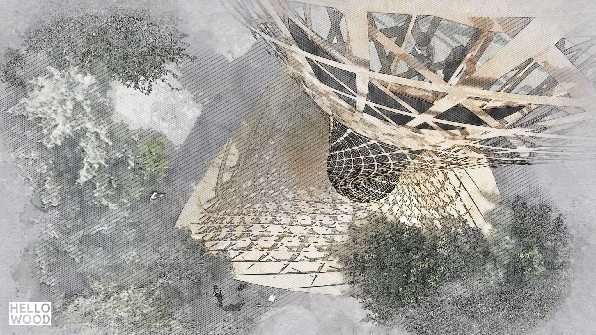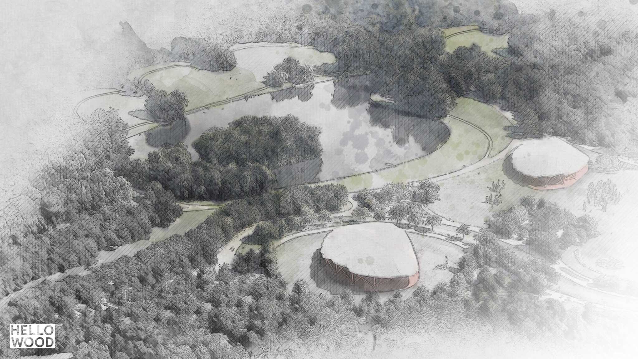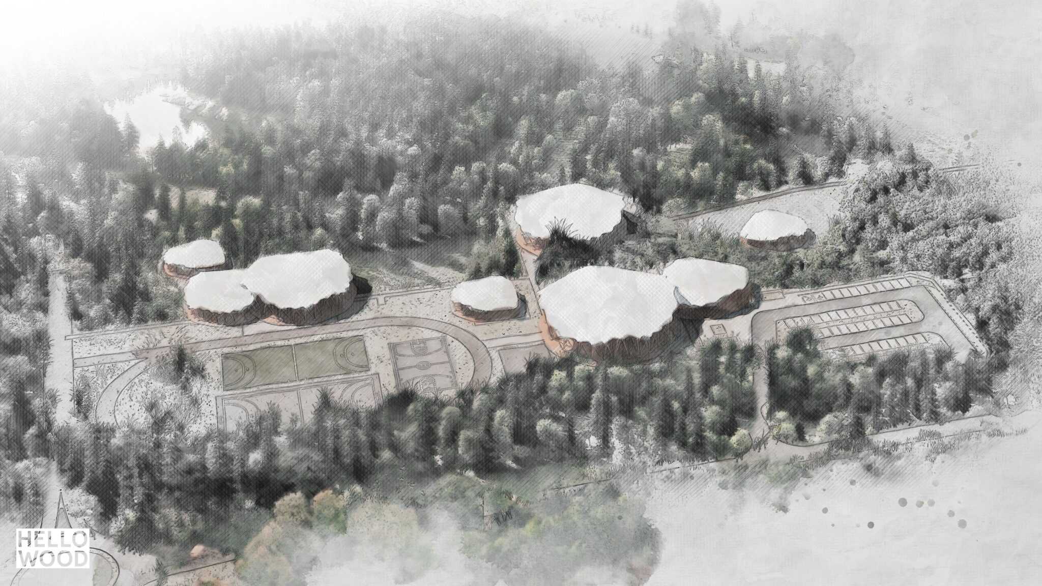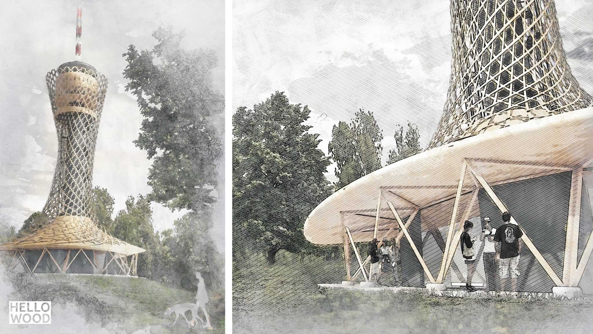 Our team made an architectural and brand concept for a sport and recreation center’s reconstruction plan, located in Zalaegerszeg, West-Hungary. We drew inspiration from the surrounding environment, which is full of alder trees. The design of the multi-building complex represents nature, thus wood was an obvious choice for the project. The plan includes 7 pavilions (each shaped like the leaves of an alder tree), the renovation of the city’s TV tower and brand identity for the city of Zalaegerszeg.