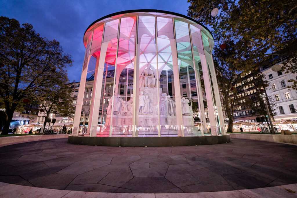 Our creative team designed and built a contemporary installation to protect one of Budapest’s most famous monuments from the frigid winters. Breaking the habit of covering the sculpture with a plastic sheet, a functional yet artistic pavilion came to life at the renewed Vörösmarty Square, located in the heart of the city. The Art Shield protects and highlights the monument at the same time, showing a new way of statue conservation. Although this is our first design that is mostly steel, it fits well with our previous works. During the design phase, we did not only focus on quality, but also on ensuring that the installation can be assembled and dismantled swiftly, and that it is also easy to transport and store. It’s important that the example of the spectacular conservational structure should be followed, therefore, we plan to deliver similar projects in the future