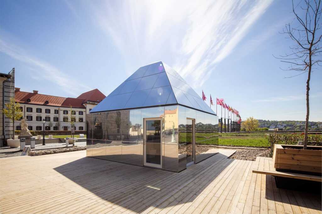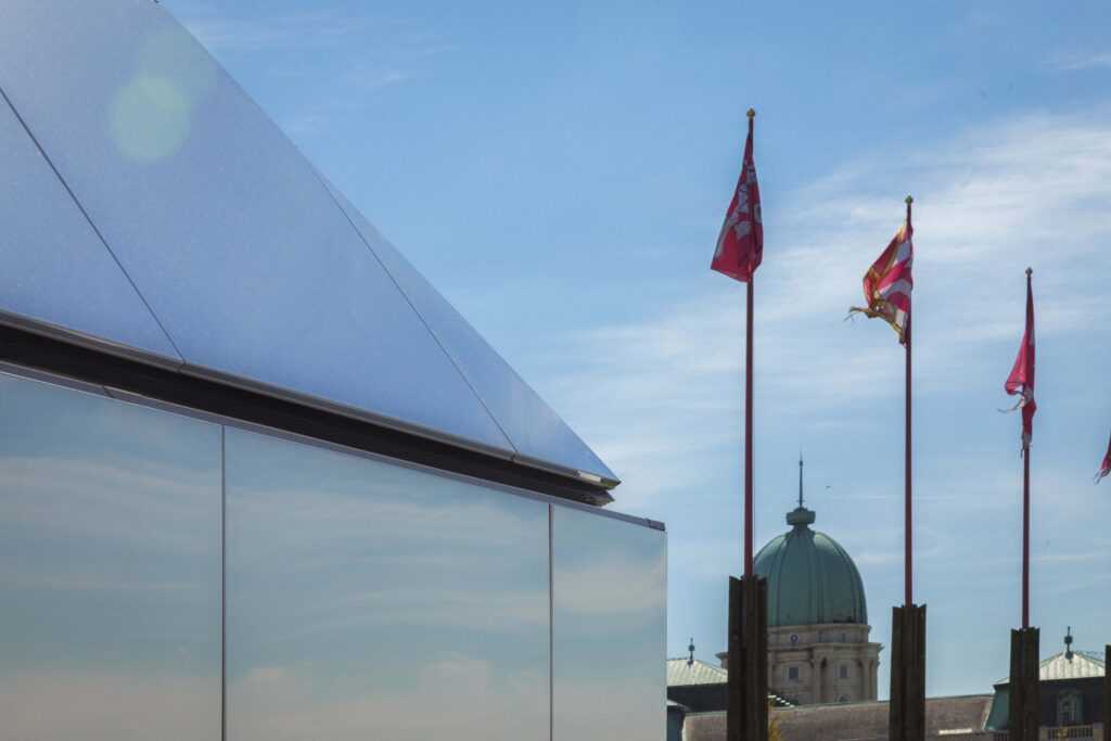 During the design process, the focus was on creating a building that fits and responds to its sensitive surroundings. The typical architectural shapes of the Buda Castle District served as an exemplar, therefore the square body was crowned with a high roof characteristic of the building around. As a contemporary architectural solution, both the façade and the roof were covered with mirror cladding.