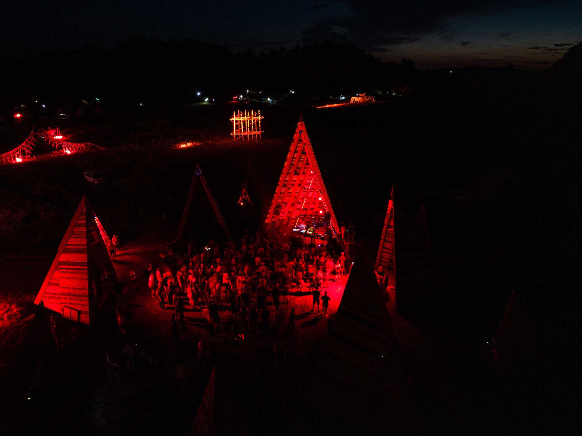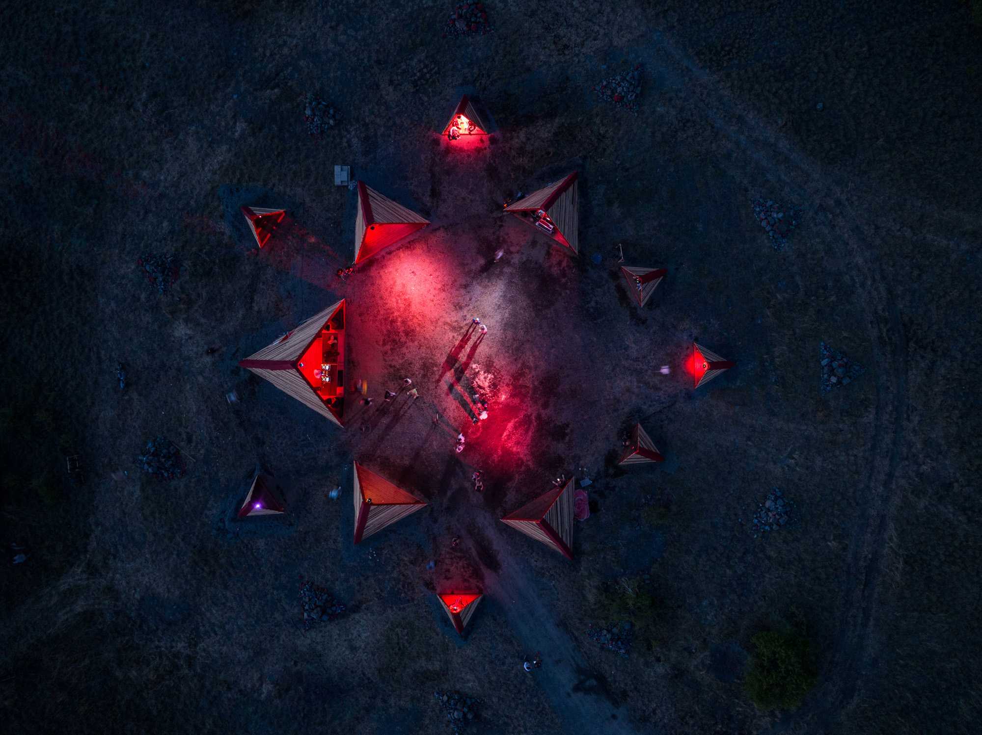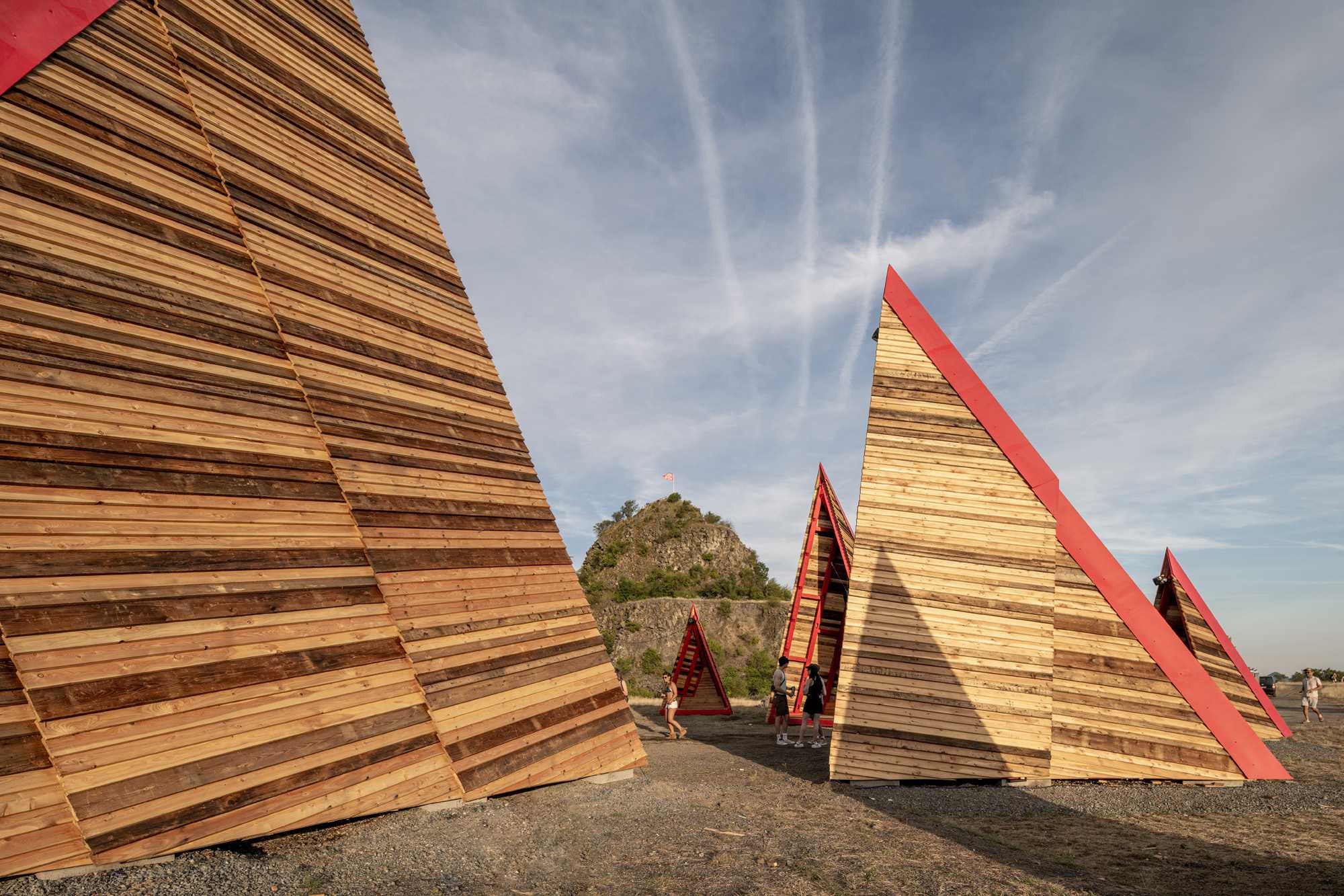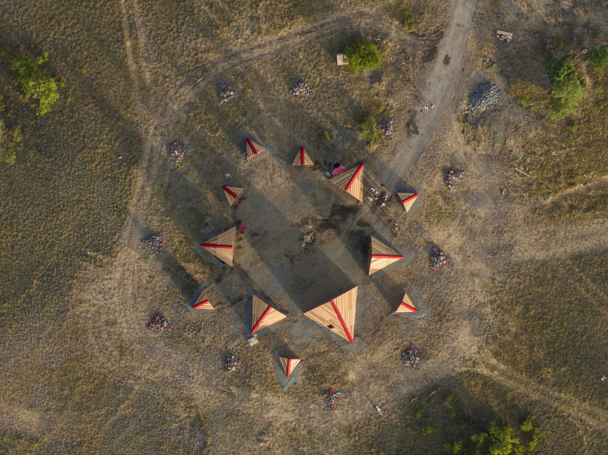 After a three-year break, our summer school & builder festival returned to welcome students, architects, and young professionals from all across the world to join the 10-day builder camp to test their wooden construction abilities, learn to collaborate, and participate actively in on-site design and construction. For the first time in Hello Wood’s 13-year history, this year’s workshop took place at a new location, in the crater of an abandoned basalt quarry on Haláp Mountain in Hungary. Monument of Builders was built to serve as the community’s meeting venue and central installation piece.