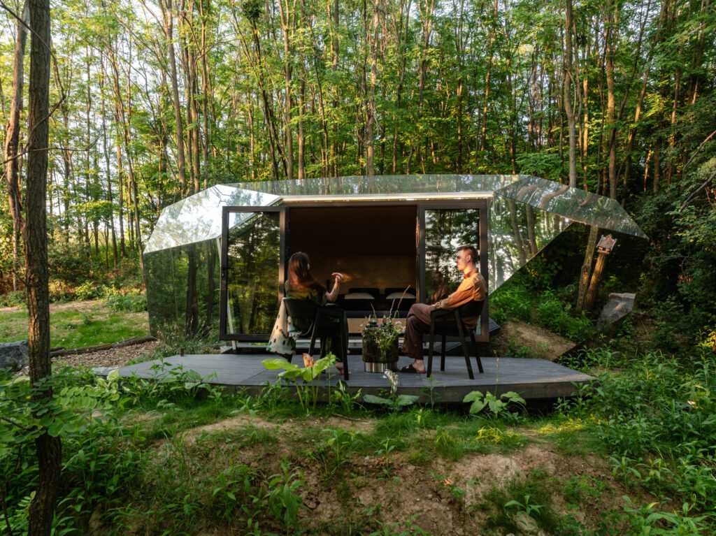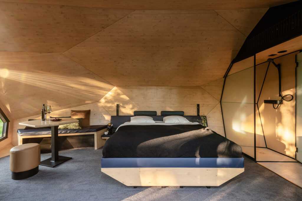 The built environment and sophisticated design elements shape our mood, impacting both us and our guests. Among the cabin houses with special designs, no two are exactly alike. Their uniqueness is a defining element, varied not only by placement and rotation but also by their distinctive designs. Whether situated in a secluded forest clearing or atop a panoramic roof facing the city, we can be sure that, amidst the pleasant private atmosphere, we will experience a “wow” moment upon arrival in this environment. The cabins’ futuristic design is available with various exterior coverings that is why it is seamlessly adapts to urban surroundings when necessary and, if circumstances allow, harmonizes with nature. This is precisely why they can be placed anywhere.