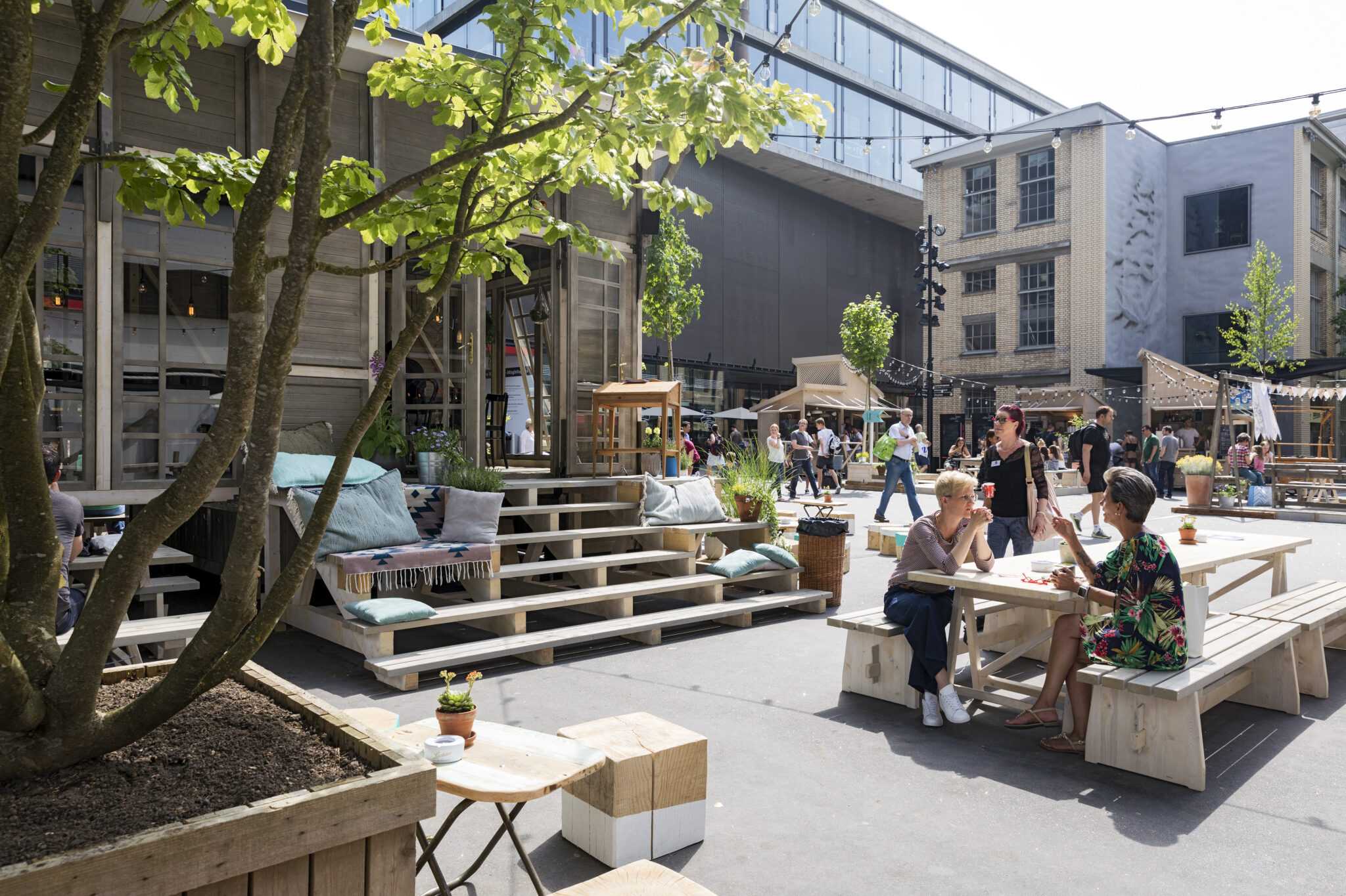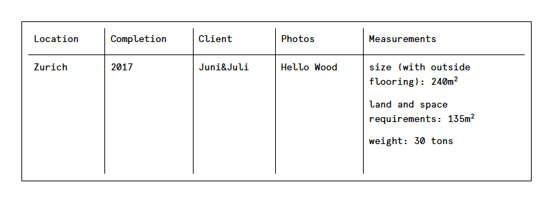 The Juni&Juli pop-up bar is a spacious, forestlike dining venue that is set up annually in Zurich in the summertime. Complete with a furnished dining room, bar, kitchen, storage room, as well as a 43 m2 terrace, the temporary structure offers easy and direct access between its indoor and outdoor spaces. Reminiscent of its broader natural surroundings, the design also incorporates lots of natural light, wood and greenery. The Pop-up bar can be rented out during spring and fall season. For further details, price inquires please contact us via hellowood@hellowood.com.